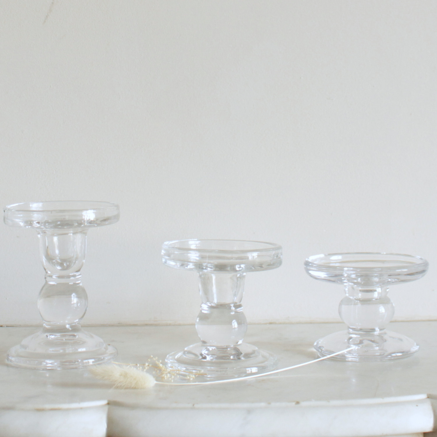Ces bougeoirs pourront se marier à de nombreuses couleurs de part leur transparence; Ils s'adapteront tout particulièrement aux tables présentant une dominante de couleurs douces avec beaucoup de fleur fraiche. Optez pour des tailles et formes diverses. Accrochez un jolie papeterie (petite étiquette) sur certains bougeoirs. Vous pouvez ajouter le cylindre en verre autour de la bougie (loué séparément en différentes hauteurs), vous pourrez ainsi placer les bougeoir au milieu de vos fleurs.