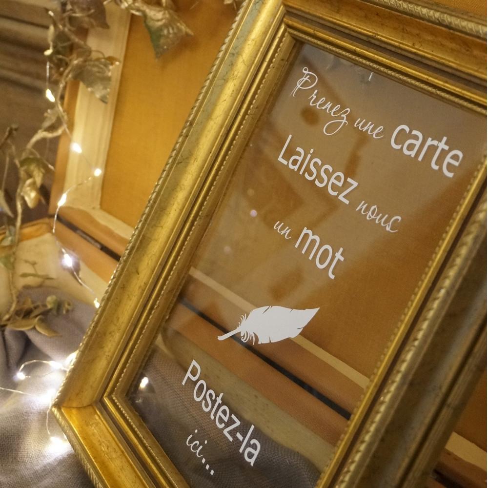 Cadre doré avec message "Prenez une carte, Laissez-nous un mot..."