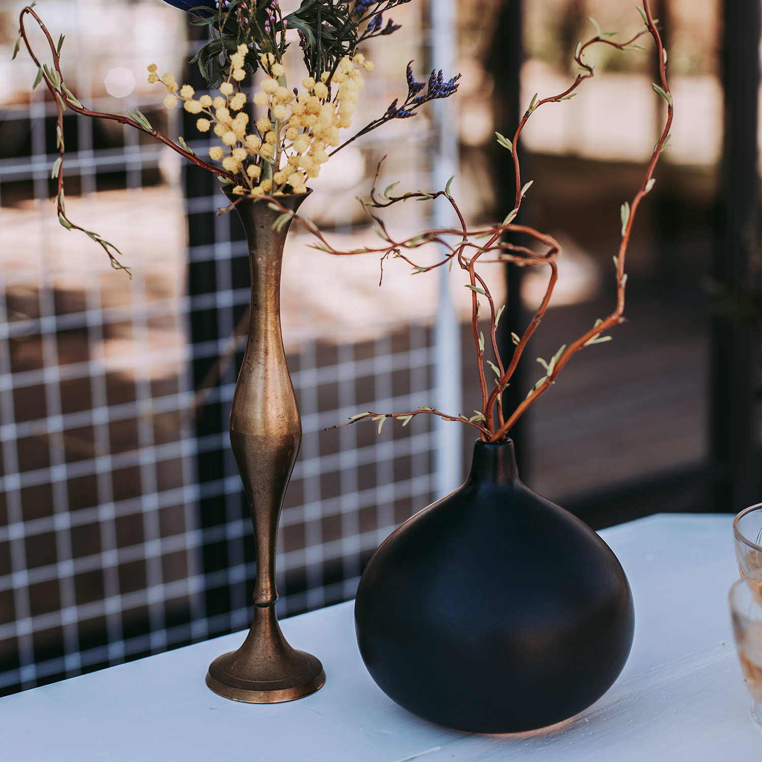 Assortiment de vases noirs de taille et de formes différentes pour donner du dynamisme aux tables rectangles