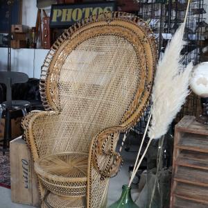 Un look exceptionnel pour cette banquette cannée des années 50-60. Tout mobilier en cannage étant fragile, on évitera cette banquette rare pour les espaces photobooth festifs.