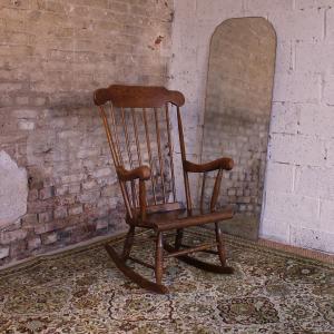 Rocking chair un bois foncé pour une mise en scène cocooning ou hivernale. Peut également venir compléter un espace lounge d'intérieur