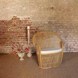 Ce fauteuil en rotin confortable peut facilement être habillé de coussins colorés. Il trouvera sa place dans un espace lounge.