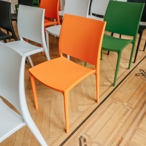 Chaises légères en polypropylène colorées et empilables Généralement utilisées comme chaises de conférence ou de spectacle. Ce modèle se décline en d'autres coloris pour un effet panaché ...
