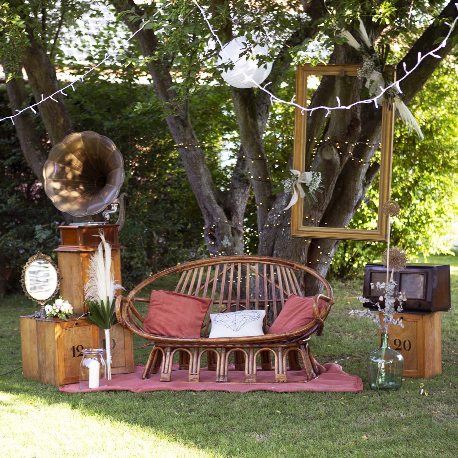 Ces assises conviennent parfaitement à l'esprit bohème, bohème chic, folk, avec des tapis, des herbes de pampas, des vases Dame Jeanne, des vielles caisses. et de belles compositions florales.