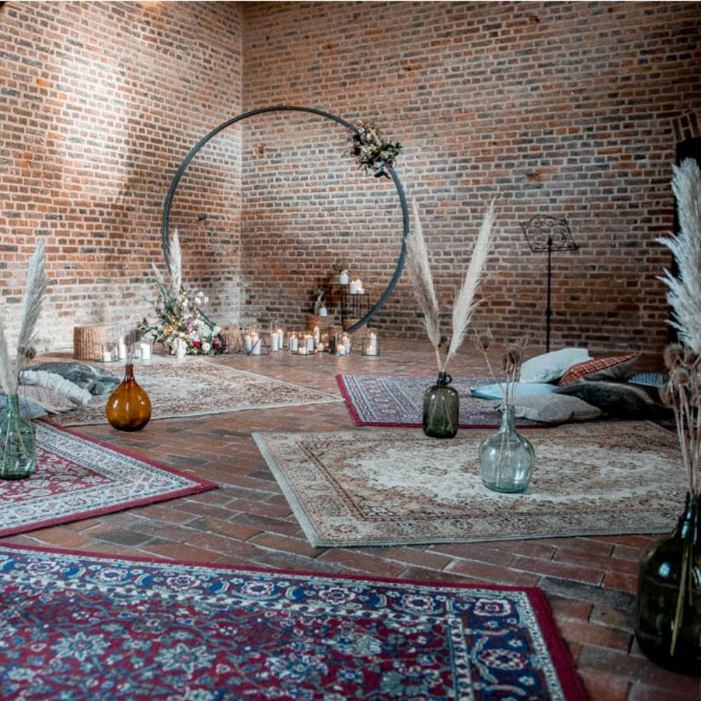 Cette structure en métal, au design épuré offre plusieurs utilisations possibles: 1- Une arche à agrémenter de feuillage et/ou fleurs pour votre cérémonie laïque 2- Une structure à placer ...