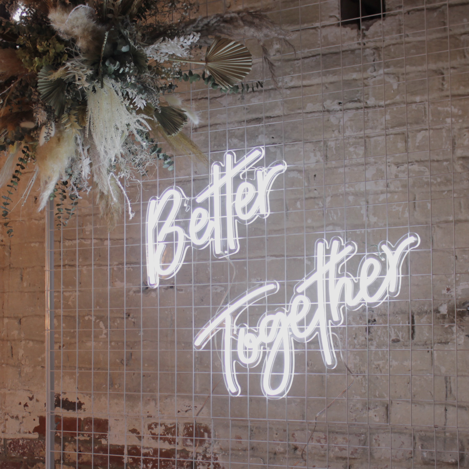 Support d'accroche pour vos néons ou compo florales, à disposer à l'arrière d'une table d'honneur ou d'un espace photobooth.