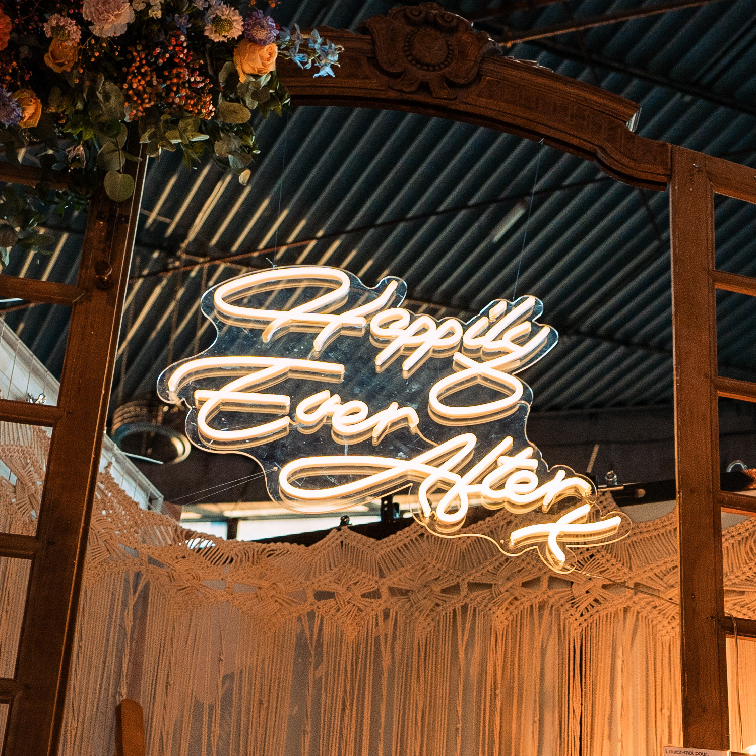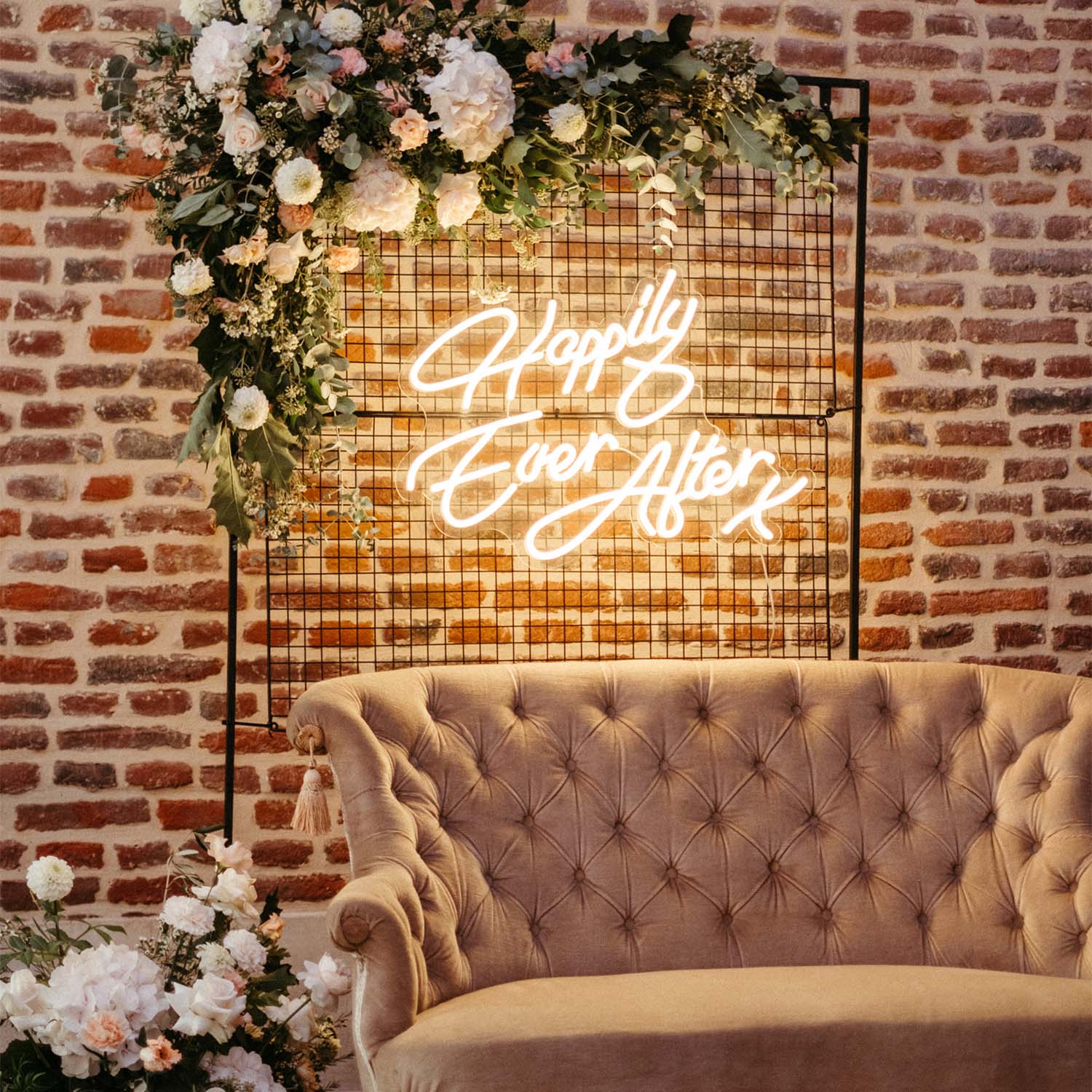 Support d'accroche pour vos néons ou compo florales, à disposer à l'arrière d'une table d'honneur ou d'un espace photobooth.