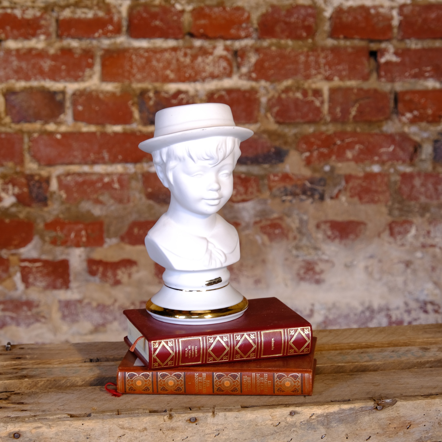 Petit buste de garçon blanc à poser sur un meuble ou une étagère, Pour un décor style cabinet de curiosités.