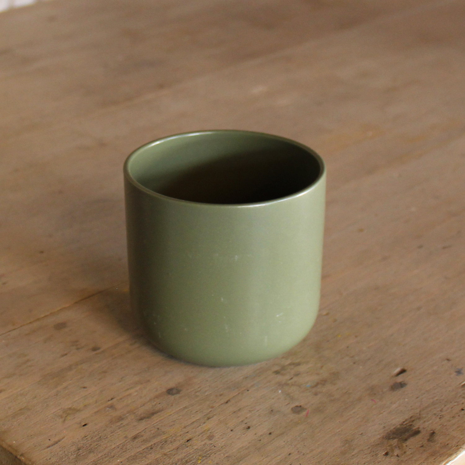 Par lot de 10. Serviettes de table unies en coton, ton kaki/mousse.