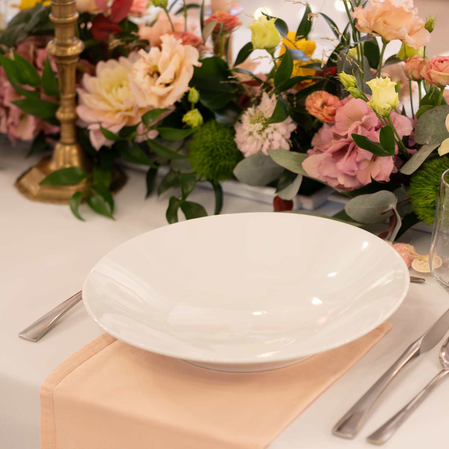 Ces serviettes à la couleur très douce apportera une petite tonalité de rose sans surcharger la table. Elles iront à merveille avec les tables aux fleurs ...