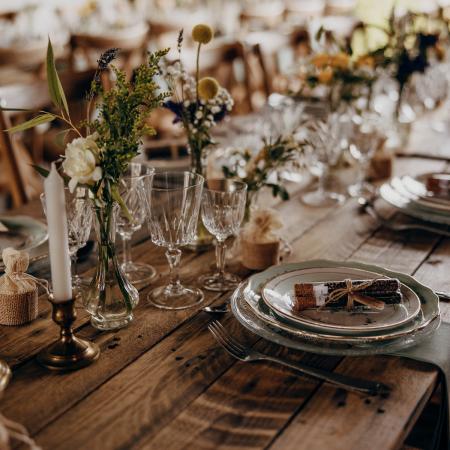Pour tamiser l’ambiance de votre réception, pensez au photophore doré, qui libère une douce lumière réconfortante.