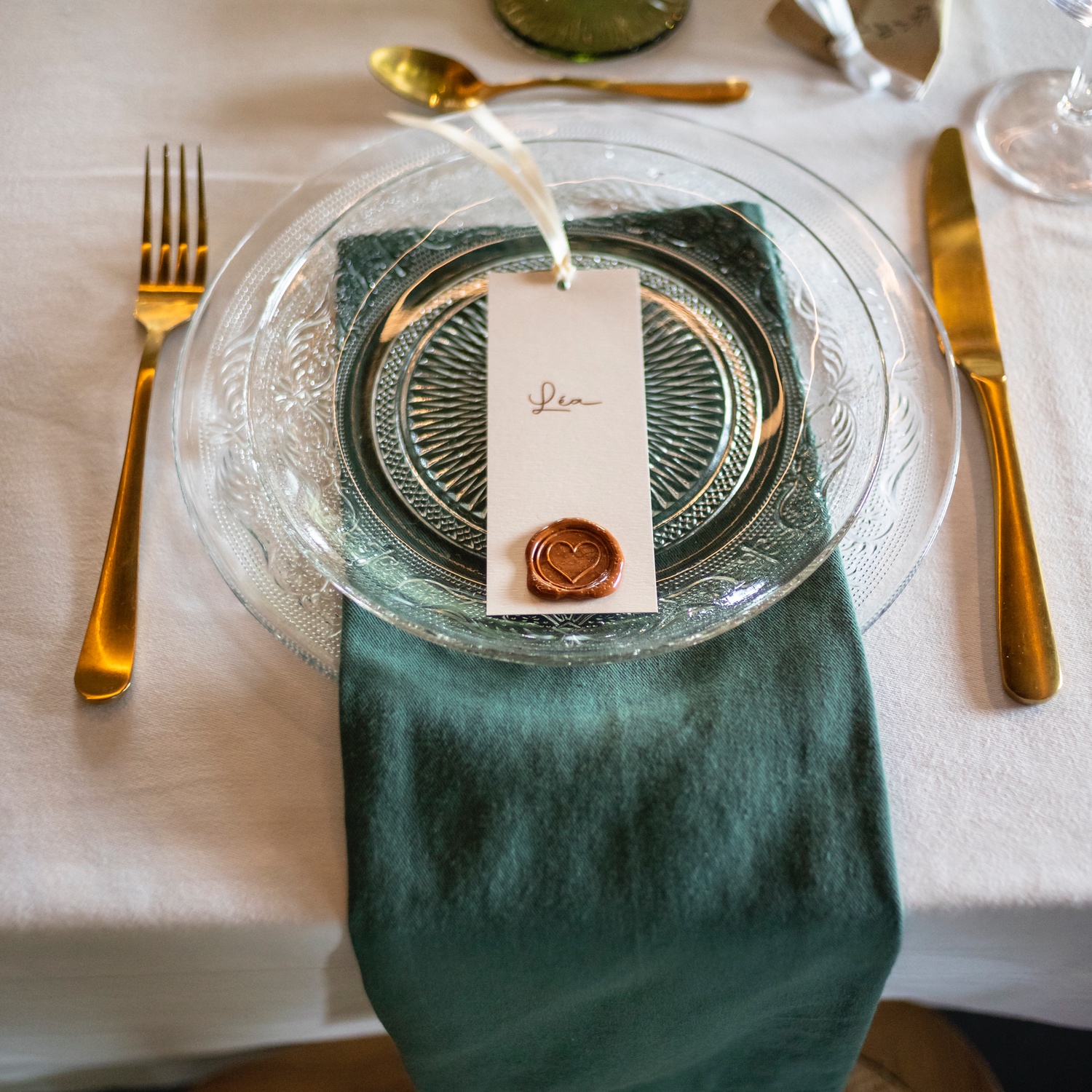 Par lot de 10 uniquement. Serviettes de table unies en coton, au ton vert foncé doux. Mariage végétal ou table de Noël.