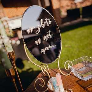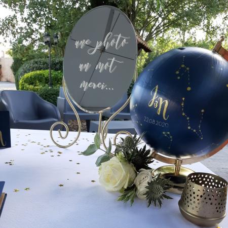 A poser sur le bureau livre'dor à côté de votre polaroid! Ce miroir doré invite avec romantisme vos proches à jouer le jeu de la photo polaroid à accrocher ou à coller su le livre d'or.