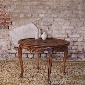 Table au dessus marqueté avec motif rose des vents. Son look élégant apportera du caractère à votre espace Fauteuils/Lounge.