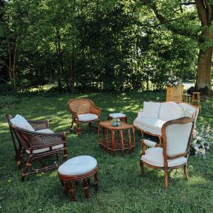 Recréez un style colonial avec ces tables en rotin foncé. Des fauteuils en rotin foncé sont également disponibles.
