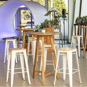 De fabrication artisanale, le mange debout vintage est la table haute incontournable des mariages champêtres et des buffets originaux et authentiques. Entouré de nos tabourets Tolix par exemple, il ...