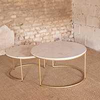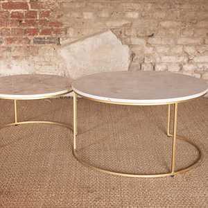 Les tables en marbre, aux pieds dorés, apporteront élégance et un petit côté gatsby à vos espaces lounge.