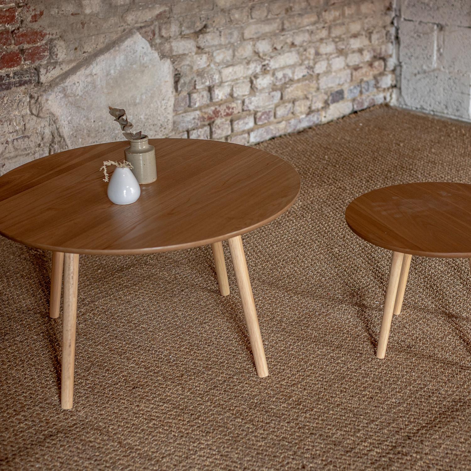 Jolies tables basses rondes à intégrer dans vos espaces composés de mobilier bambou et rotin.