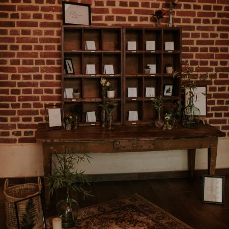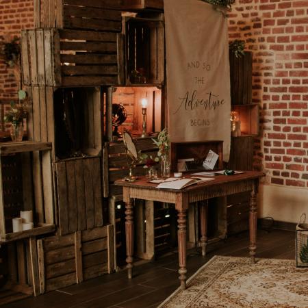 Agrémenté par de la jolie décoration, un cadre photo et les mots et phrases se suivent. Ce bureau permettra à vos invités d’écrire leurs plus belles lignes.