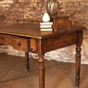 Petite table d'appoint au look retro , adouci par une patine sur les pieds. Son plateau authentique en bois brut ciré, avec ses imperfections, apportera beaucoup de charme à votre espace livre-d'or.