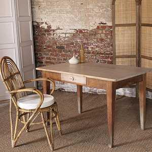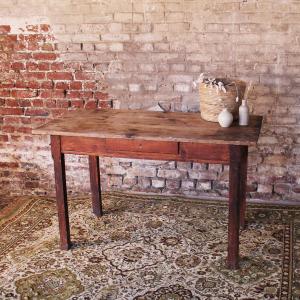Ancienne table chinée, au plateau brut, dotée d'un tiroir, très légèrement adouci d'une patine transparente. Les pieds sont restés dans leur jus , couleur marron très clair , conférent à la ...