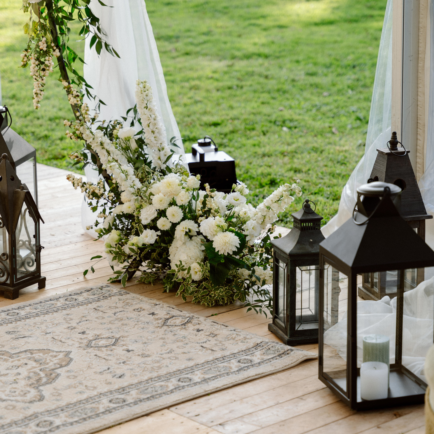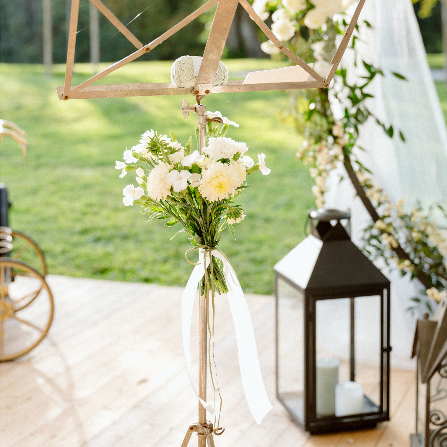 Au pied d'un fauteuil pour un espace photobooth ou a l'entrée au pied du panneau d'accueil ou de part et d'autre d'une entrée/allée