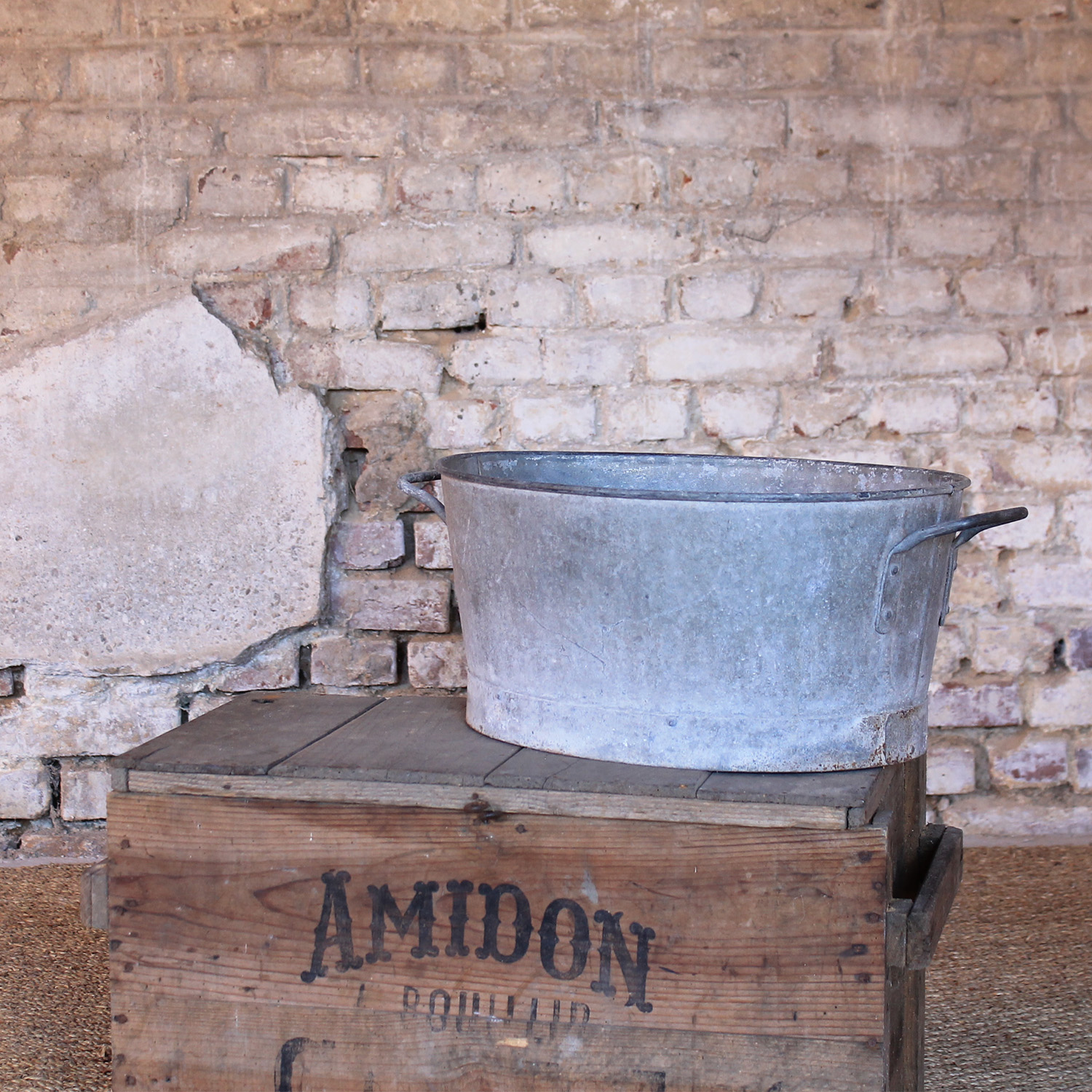Vieille malle, abîmée, aux fermetures rouillées, dans son jus. Son usure apporte beaucoup de cachet et d'authencité à la mise en scène.
