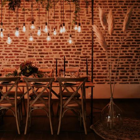 Placez divers chandeliers, formes et tailles variées dans un coin de votre cérémonie ou de votre salle pour une ambiance tamisée romantique.