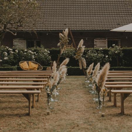 Pots en jute à remplir de gypsophile, de plantes ou de fleurs séchées pour décorer l'allée cérémonie.