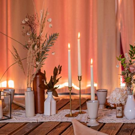 Placez divers chandeliers, formes et tailles variées dans un coin de votre cérémonie ou de votre salle pour une ambiance tamisée romantique. Peut accueillir jusqu'à 5 bougies.