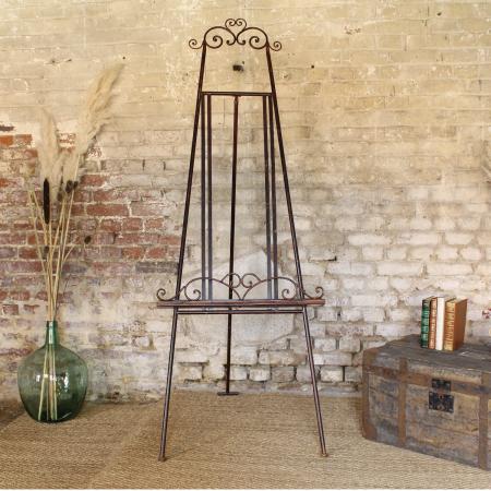 Exceptionnel et rare, grand chevalet en fer forgé pour panneaux d'accueil ou plans de table