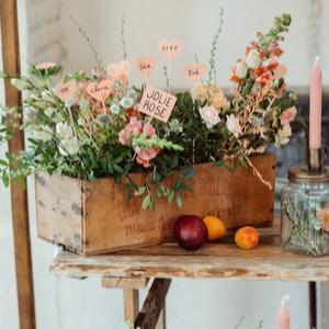 Empilés, posés çà et là, les cageots à légumes font partie des must-have en décorations champêtres.