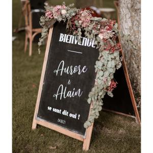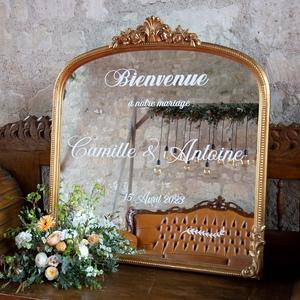 Chevalet fourni. Ce très beau miroir pourra être personnalisé totalement (stickers ou stylo blanc) pour en faire votre plan de table, ou votre panneau d'accueil, ou le menu.