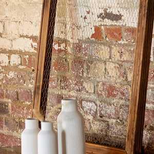 Porte ancienne légèrement patinée au fond peint à la main, à poser sur un support en bois fourni, fixée à celui-ci à l'aide de chaînettes. Vous n'aurez donc pas besoin d'un mur pour la ...
