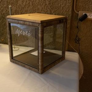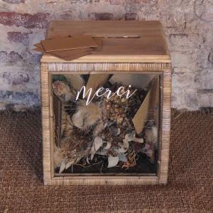 La douceur de l'osier... Les drapeaux "Merci" ne sont pas fournis avec l'urne. Celle-ci est désormais fournie avec un stickers merci sur le socle au dessus de la fente.