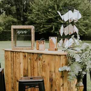 Tant de charme pour cette toute petite travailleuse qui trouvera facilement sa place sur un buffet pour présenter des verrines ou des cadeaux des invités. Pour une mise en scène type photobooth, ...