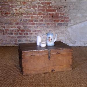 Grande valise en bois, elle apporte beaucoup de cachet à vos mises en scène, et sa fonction pourra être détournée à l'infini. Sur le dessous (partie non visisble) , elle est abîmée. Les ...