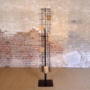 Ce tourniquet a une grande capacité car l'espace pour placer les cartes fait plusieurs centimètres. Il se pose sur une table. Ce tourniquet ancien présente des petits piqures et écailles qui font ...